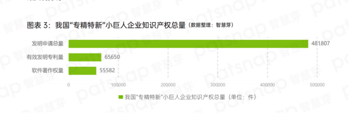 在這些“專(zhuān)精特新”小巨人企業(yè)中,專(zhuān)利申請(qǐng)總量48.18萬(wàn)件,平均單企業(yè)專(zhuān)利申請(qǐng)98件;有效發(fā)明專(zhuān)利量6.57萬(wàn)件,平均每家企業(yè)有效發(fā)明專(zhuān)利量約13件;軟件著作權(quán)共5.56萬(wàn)件,平均每家企業(yè)擁有軟件著作權(quán)約11件。