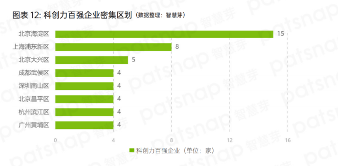 科創(chuàng)力排名前100企業(yè)所在行政區(qū)中,中國(guó)“專(zhuān)精特新”小巨人企業(yè)最多的區(qū)劃是北京市海淀區(qū),有15家企業(yè)上榜,第二是上海市浦東新區(qū),有8家企業(yè)上榜,第三是北京市大興區(qū),5家企業(yè)上榜。杭州市濱江區(qū)、北京市昌平區(qū)、廣州市黃埔區(qū)、深圳市南山區(qū)和成都市武侯區(qū)分別有4家企業(yè)上榜。