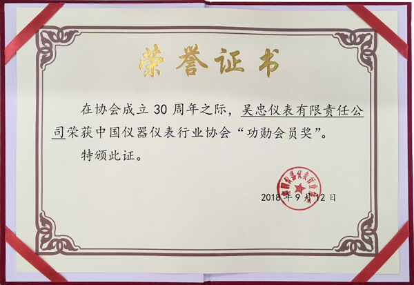 吳忠儀表有限責(zé)任公司獲得功勛會員獎