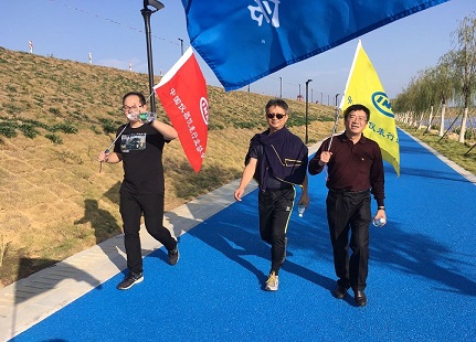 活動(dòng)以競(jìng)賽形式分為三組,每隊(duì)約6人。伴隨著湛藍(lán)的天空,宜人的美景,大家一路上精神飽滿、歡歌笑語,邊走邊交流。湖面波瀾蕩漾,波光粼粼,岸邊丹桂飄香,水中魚兒不時(shí)躍出水面,仿佛在呼應(yīng)大家的熱情。身邊隊(duì)友的加油鼓勁讓整個(gè)行走過程歡快盡興,既感受到運(yùn)動(dòng)帶來的快樂和濕地秋景的美好,又倍感團(tuán)隊(duì)的溫暖,增進(jìn)了友誼,加強(qiáng)了協(xié)會(huì)大家庭的凝聚力。