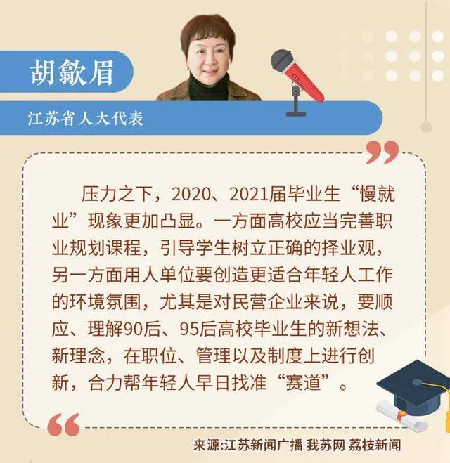 胡歙眉發現,壓力之下,2020、2021屆畢業生“慢就業”現象更加凸顯,無論快與慢,年輕人盡快找準屬于自己的“賽道”才是關鍵。如何讓畢業生能夠結合自身優劣勢制定個人規劃,更好地為國家重點需要發展領域做出貢獻,都是學校、用人單位都需要思考的問題。