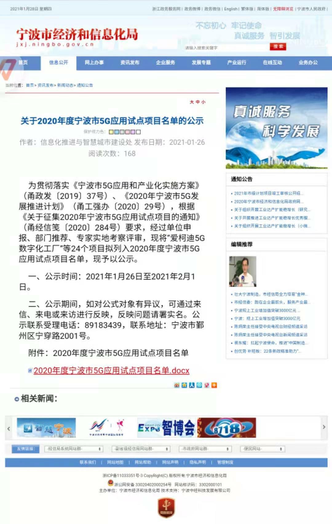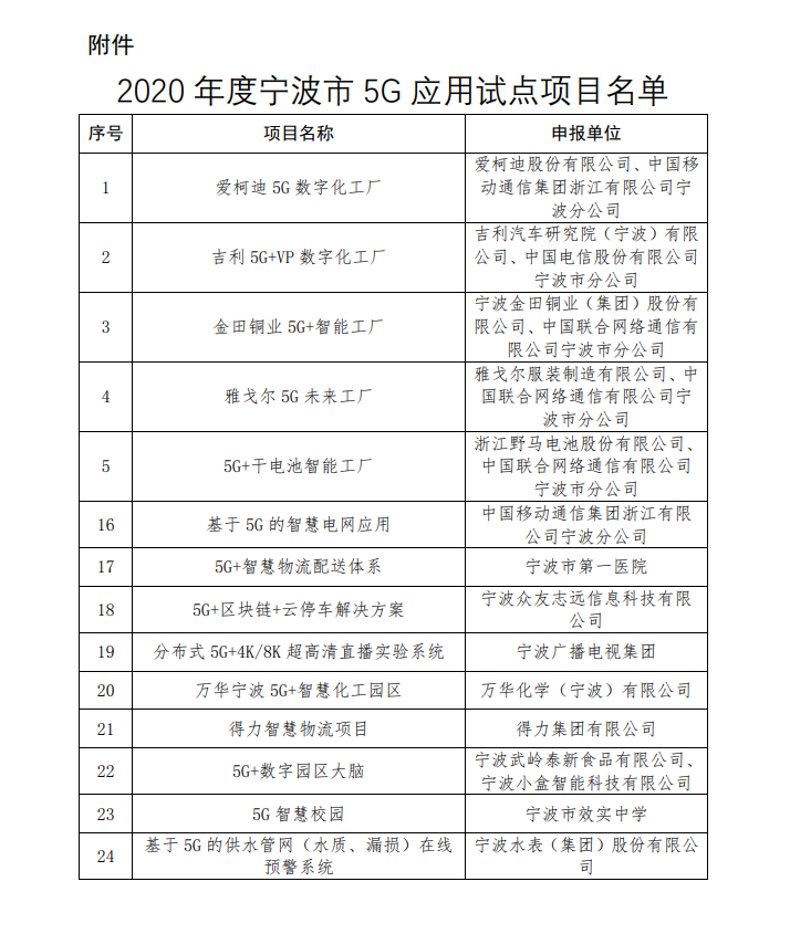 根據(jù)《關(guān)于征集2020年寧波市5G應(yīng)用試點(diǎn)項(xiàng)目的通知》(甬經(jīng)信箋[2020]284號(hào))要求,經(jīng)過單位申報(bào)、部門推薦、專家實(shí)地考察評(píng)審,寧波水表(集團(tuán))股份有限公司(以下簡(jiǎn)稱:寧水集團(tuán))的“基于5G的供水管網(wǎng)(水質(zhì)、漏損)在線預(yù)警系統(tǒng)”等24個(gè)項(xiàng)目被列入2020年度寧波市5G應(yīng)用試點(diǎn)項(xiàng)目名單,并于2021年1月26日至2021年2月1日進(jìn)行了網(wǎng)上公示。該項(xiàng)目主要內(nèi)容有管網(wǎng)綜合感知終端/多參數(shù)水表(智能水表3.0產(chǎn)品)、5G通信終端、管網(wǎng)(水質(zhì)、漏損)在線預(yù)警平臺(tái)等關(guān)鍵技術(shù)的研制,以及工程化應(yīng)用等。