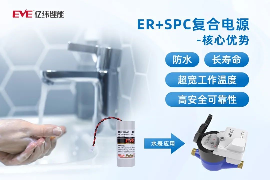 億緯鋰能擁有智能水表全系列解決方案,包括ERCRES復合電源,其中,由億緯鋰能自主創新研發的ES復合電源方案,兼顧了鋰亞電池長壽命、電池電容器輸出大脈沖的優勢,有效地保障水表更穩定、精確、長壽命運行,且采用獨特的電池組灌膠工藝,可以滿足水浸場景應用。
