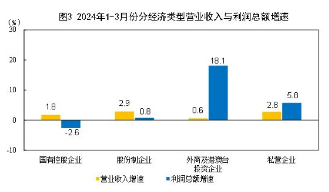 1-3月份,規(guī)模以上工業(yè)企業(yè)中,國有控股企業(yè)實(shí)現(xiàn)利潤總額5738.2億元,同比下降2.6%;股份制企業(yè)實(shí)現(xiàn)利潤總額11203.0億元,增長0.8%;外商及港澳臺投資企業(yè)實(shí)現(xiàn)利潤總額3737.5億元,增長18.1%;私營企業(yè)實(shí)現(xiàn)利潤總額3679.7億元,增長5.8%。