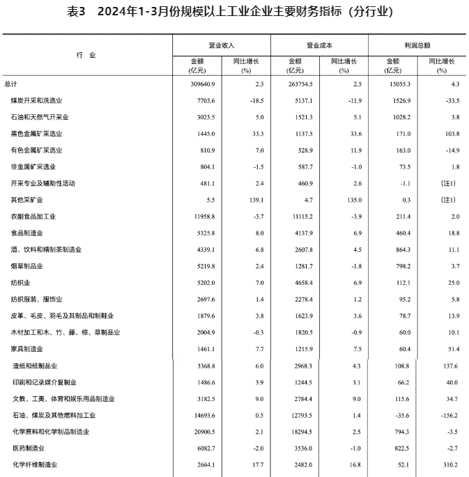 2024年1-3月份,全國規(guī)模以上工業(yè)企業(yè)實(shí)現(xiàn)利潤總額15055.3億元,同比增長4.3%(按可比口徑計(jì)算)。