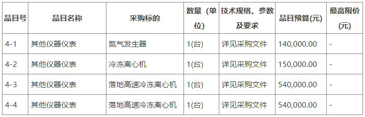 合同包4(氮氣發(fā)生器、冷凍離心機、落地高速冷凍離心機):