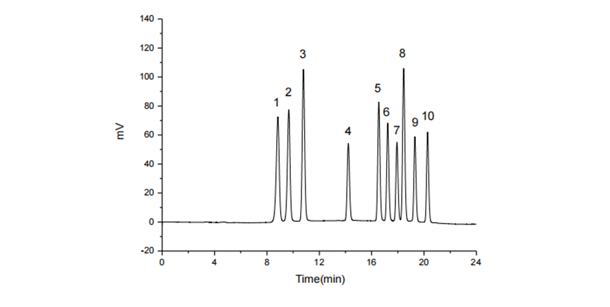 1. 涕滅威亞砜Aldicarb sulfoxide; 2. 涕滅威砜Aldicarb sulfone ;3. 滅多威methomyl;4. 3-羥基克百威3-hydroxy carbofuran;5. 涕滅威Aldicarb; 6. 速滅威Metolcarb; 7. 克百威Carbofuran; 8. 甲萘威Carbaryl; 9. 異丙威Isoprocarb; 10. 仲丁威Fenobucarb