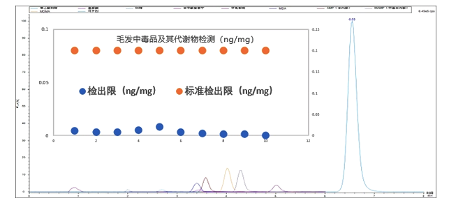 基于EXPEC 5210/5310/5700液相色譜-三重四級(jí)桿質(zhì)譜聯(lián)用儀,譜育科技建立了豐富的應(yīng)用方法,覆蓋污水、毛發(fā)、血液、尿液等多種復(fù)雜樣本類型,能夠精準(zhǔn)識(shí)別200余種毒品、新精神活性物質(zhì)及代謝物,最低檢出限可達(dá)0.1 μg/L。該系列儀器在靈敏度等指標(biāo)方面已對(duì)標(biāo)國(guó)外主流品牌。