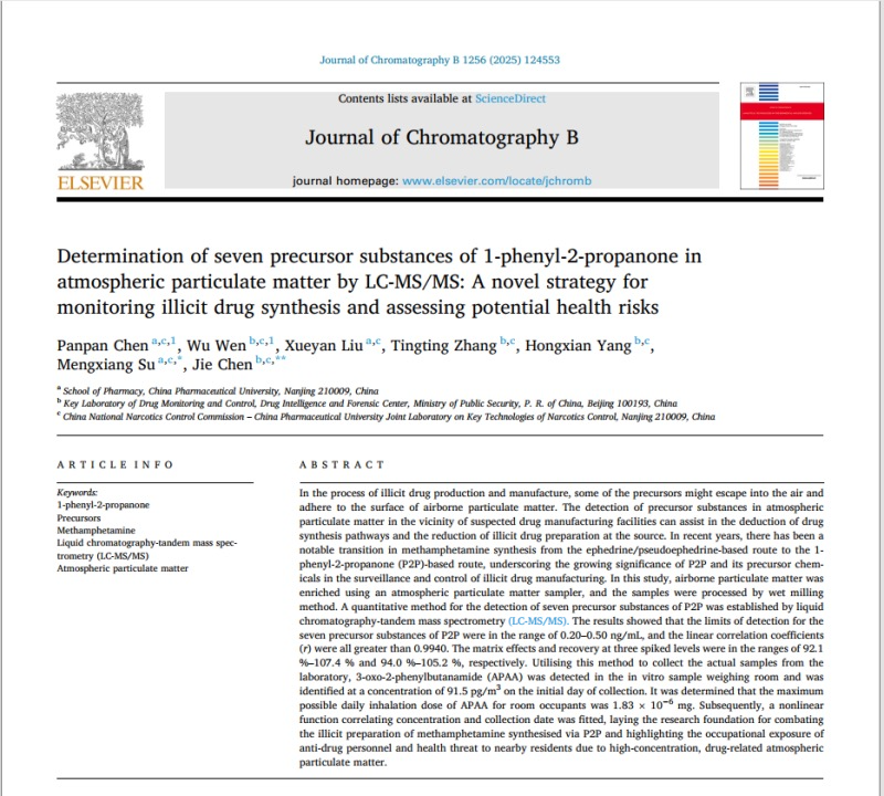 該國(guó)家級(jí)毒品實(shí)驗(yàn)室基于液相色譜-三重四級(jí)桿質(zhì)譜聯(lián)用儀進(jìn)行科學(xué)研究,在《Journal of Chromatography B》發(fā)表論文。