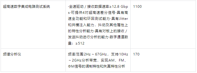 超高速數字集成電路測試系統(1100萬元): 核心指標包括≥12.8 Gbps 的數據速率、≥4對超高速差分信號、強大的抖動注入與分析能力、≥512通道數。這瞄準了高速SerDes (PCIe 6.0/7.0, DDR5/LPDDR5X及更高)、網絡處理器、高端FPGA等器件的測試挑戰。