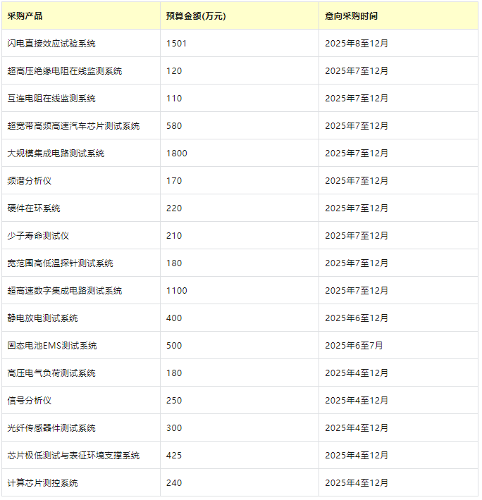 近日,工信部電子第五研究所(中國賽寶實驗室)近期發布2025712月政府采購意向公告,電子測試測量設備采購預算總額高達8796萬元!這份重量級采購清單,不僅是一份訂單,更是窺探中國電子產業核心測試需求與前沿技術發展方向的絕佳窗口。