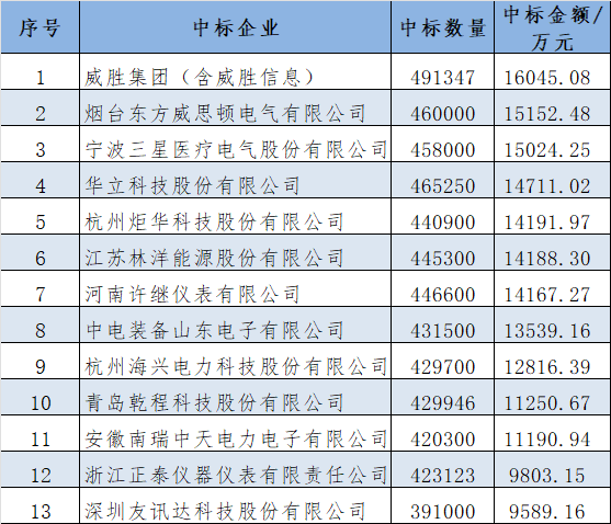 本批次電能表+終端匯總中標數據