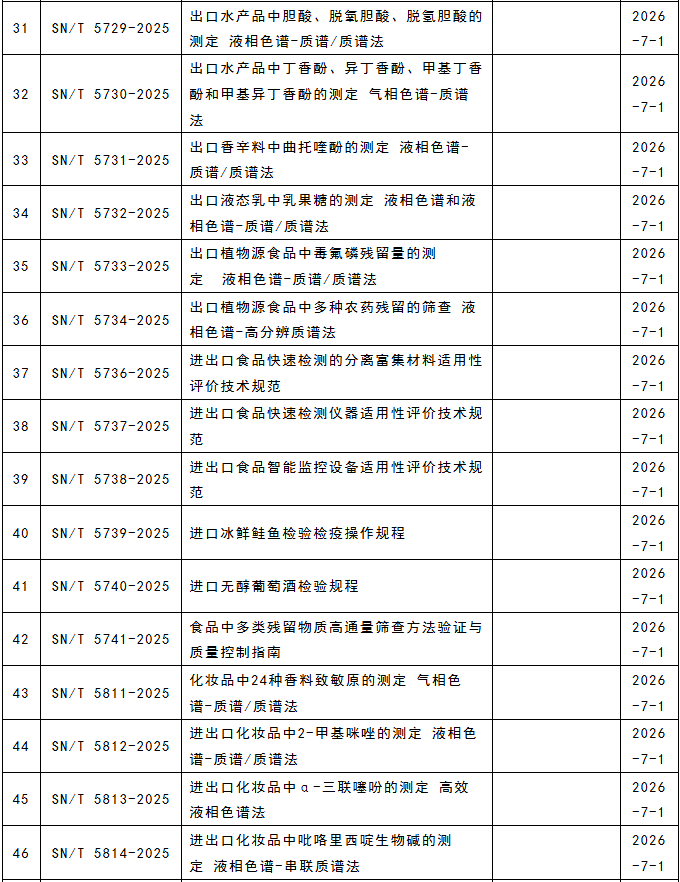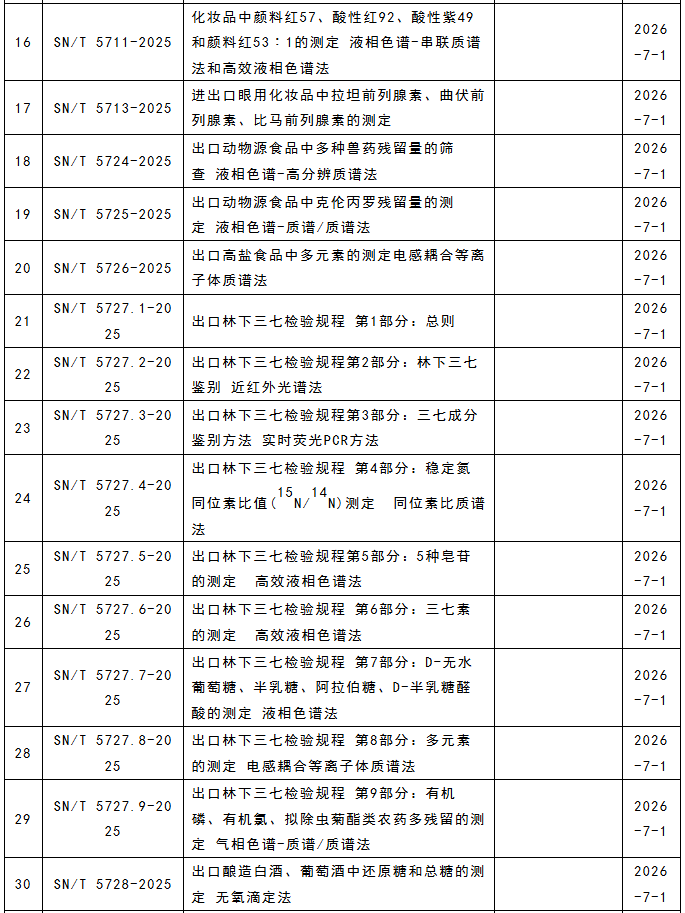 這117項(xiàng)行業(yè)標(biāo)準(zhǔn)涵蓋食品、化妝品、藥材等領(lǐng)域,涉及液相色譜串聯(lián)質(zhì)譜法、液相色譜-質(zhì)譜/質(zhì)譜法、高效液相色譜法、電感耦合等離子體質(zhì)譜法、近紅外光譜法、實(shí)時(shí)熒光PCR方法等檢測(cè)方法。