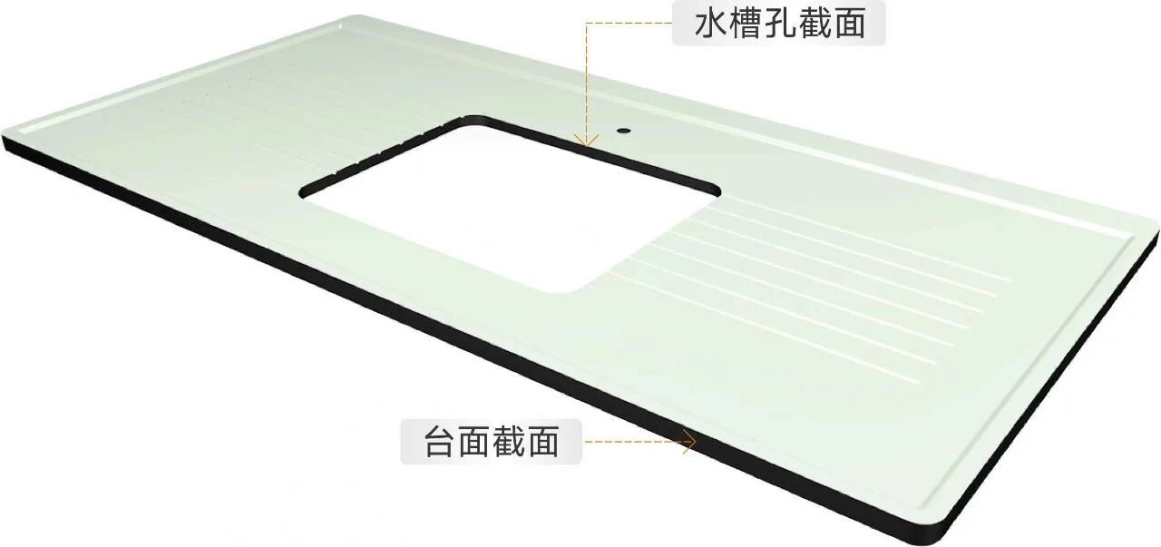 第九代-歐標陶瓷臺面可見截面及水槽孔截面全新升級一體成型釉面,適用于水槽臺及通風柜臺面。