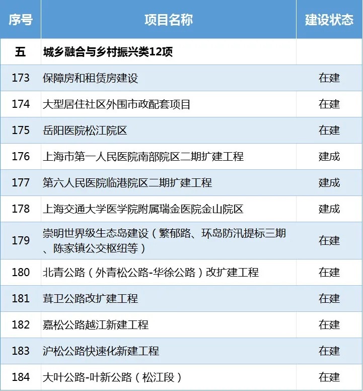 在建項(xiàng)目61項(xiàng):上海LNG站線擴(kuò)建、漕涇綜合能源中心二期、浦東機(jī)場(chǎng)四期擴(kuò)建及配套工程、東方樞紐上海東站及配套工程、市域線嘉閔線及北延伸、漕寶路快速路、龍水南路越江隧道等。