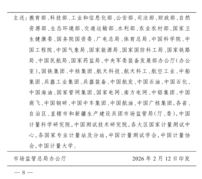 近日,市場監管總局印發《2026年全國計量工作要點》,明確2026年將緊緊圍繞“講政治、強監管、促發展、保安全”的工作總思路,緊扣“一個大市場、兩個綱要、三個監管、四個安全”工作著力點,大力實施計量強基工程,科學謀劃“十五五”計量工作,加強基礎建設,強化監管,創新服務,深化國際合作,加快構建國家現代先進測量體系,為基本實現社會主義現代化筑牢計量基礎。